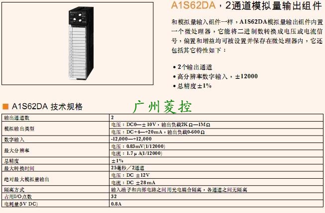 A1S62DA:三菱模擬量輸出模塊A1S62DA