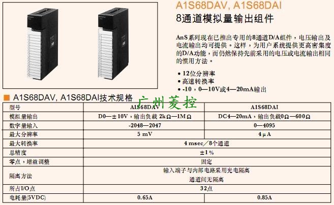 A1S68DAI:三菱模擬量輸出模塊A1S68DAI